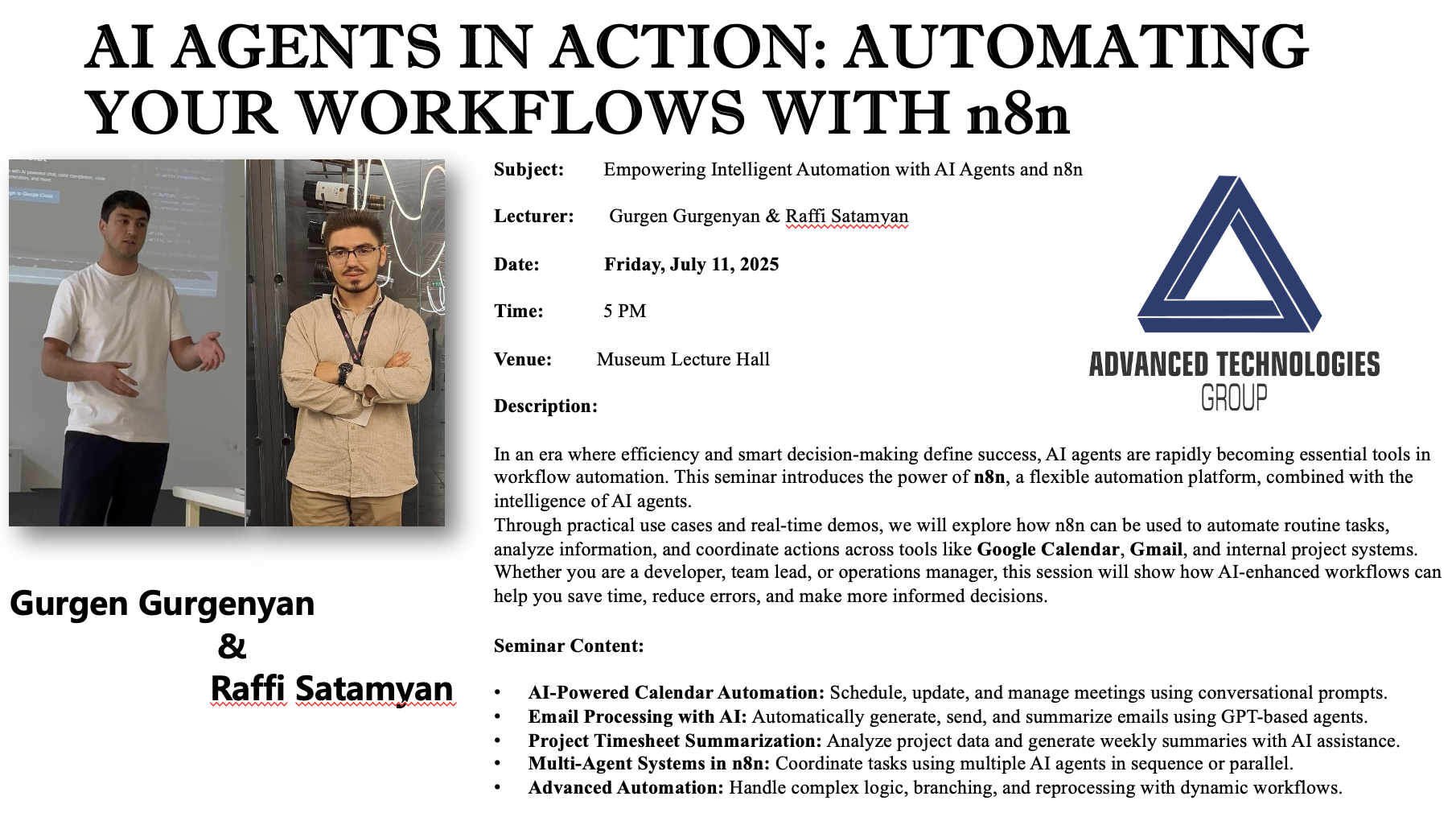 Lecturer: Gurgen Gurgenyan & Raffi Satamyan, ATG